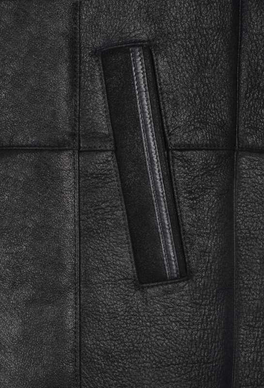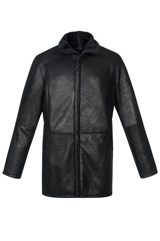 Kożuch męski z owczej skóry. Miękki i lekki, pod szyją otulająca, wyższa stójka, zapinana na nap, z możliwością wyłożenia jako kołnierz.Idealny dla panów noszących marynarki .